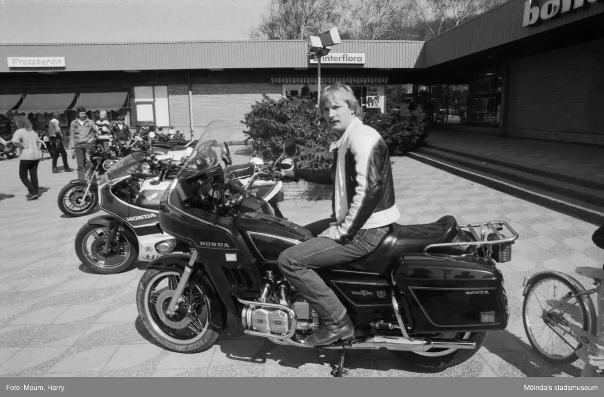 Kållereds Motorklubb visar upp motorcyklar i Kållereds centrum, år 1984.