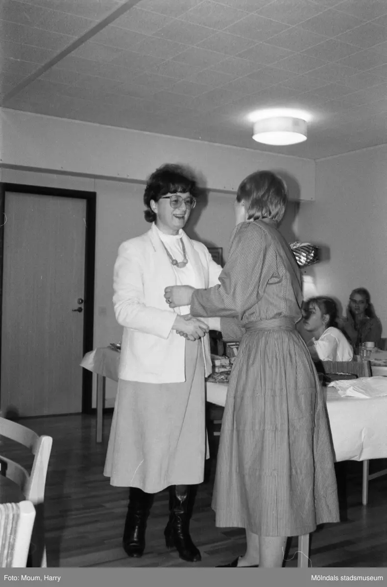 Gospelkören Seier från Mölndals vänort i Norge gästar Kållered, år 1984. Körledarna Björg Höyang och Eva Karlsson.