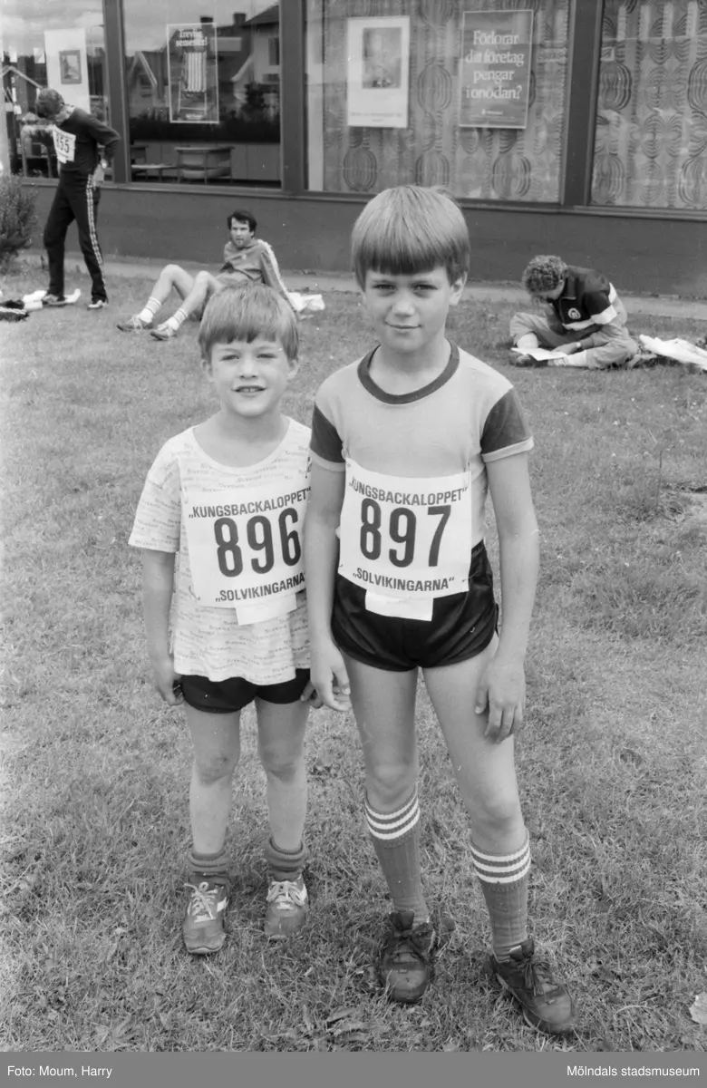 Deltagare i Kungsbackaloppet, år 1984. Vy från Kållereds centrum. "Daniel och David Ragnestam, Örebro."