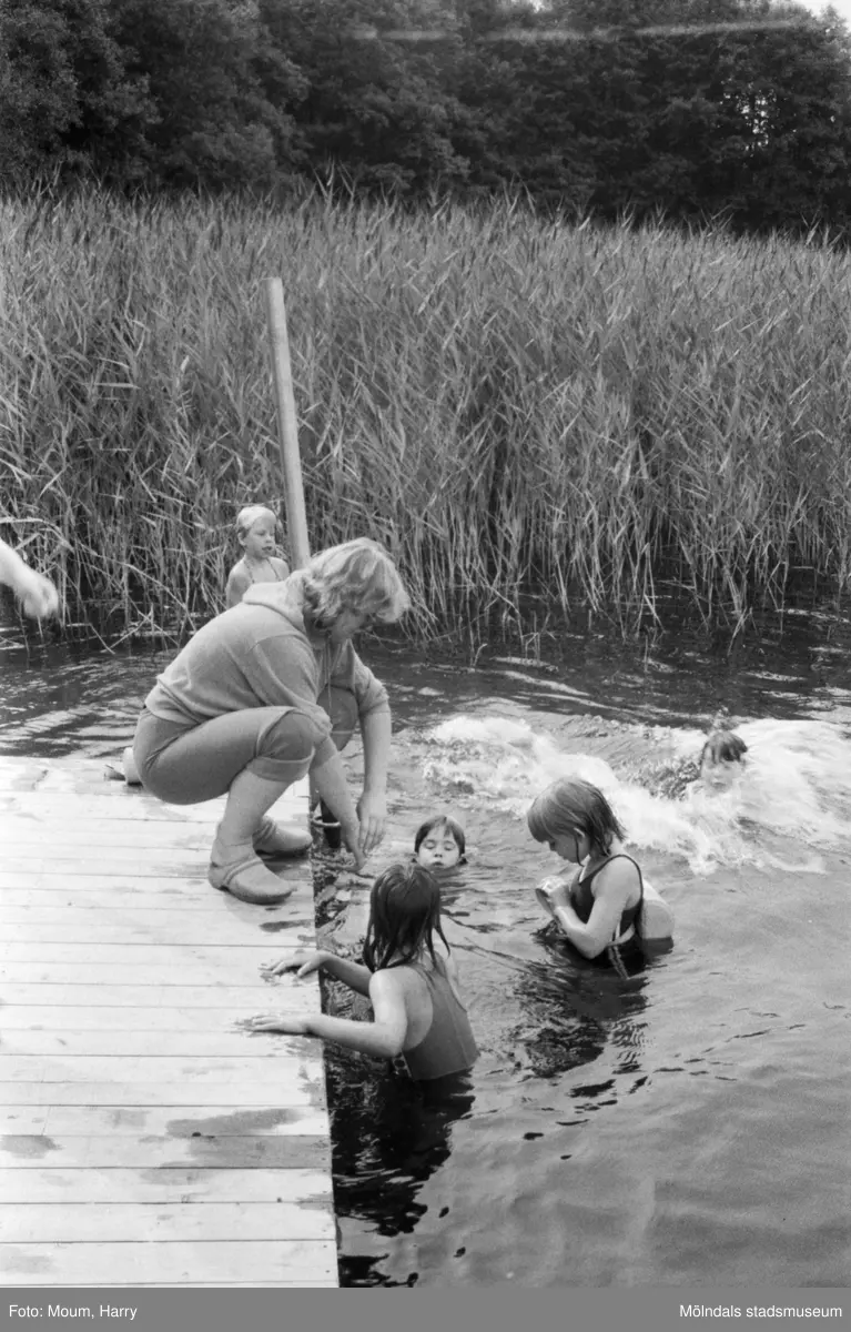 Simskola vid Tulebosjön i Kållered, år 1984. "Simlärare är Monica Flykt och Lena Roseke och de har 50-talet elever att undervisa."
