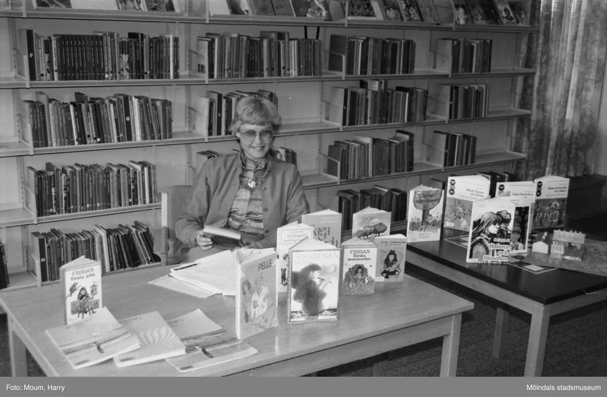 Författarinnan Maj Bylock besöker Kållereds bibliotek, år 1984.