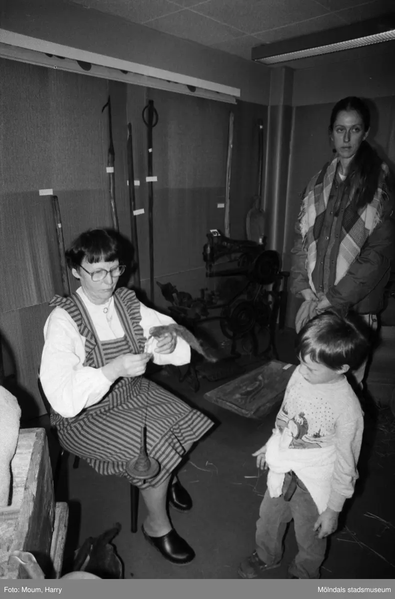 Lindome kulturdagar på Almåsgården i Lindome, år 1984. "Vivian Skarin visade hur man spinner med slända."