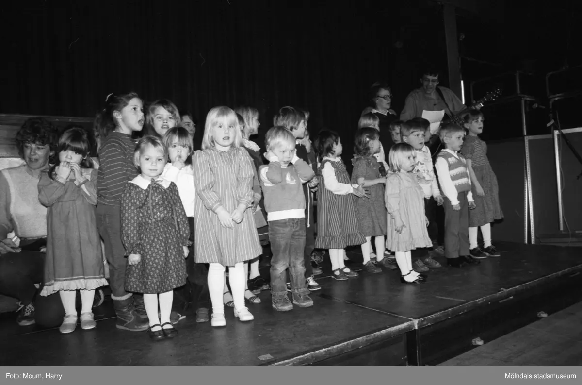 Barn från Sinntorp daghem sjunger under Lindome kulturdagar på Almåsgården i Lindome, år 1984.