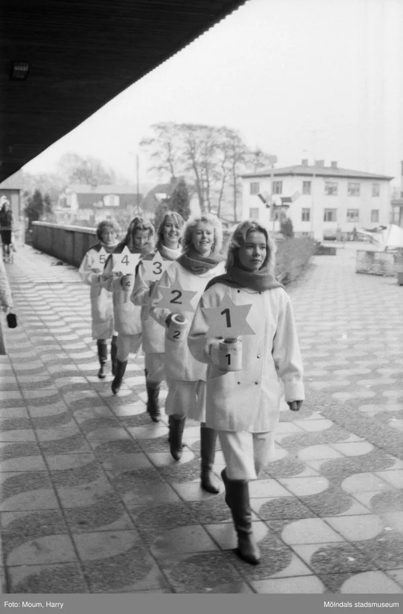 Kållereds luciakandidater presenteras i Kållereds centrum, år 1984.