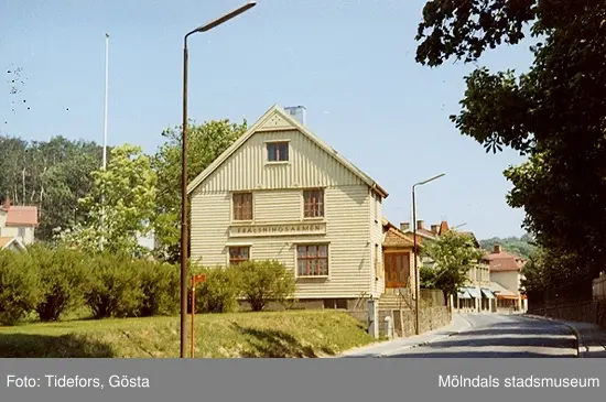 Frälsningsarméns lokal på Kvarnbygatan, 1960-tal. Huset låg mitt emot Papyrus lilla port. I bakgrunden ses de nedfällda markiserna till Sven Ahlin Herrekipering på Kvarnbygatan 25 (Frituna).