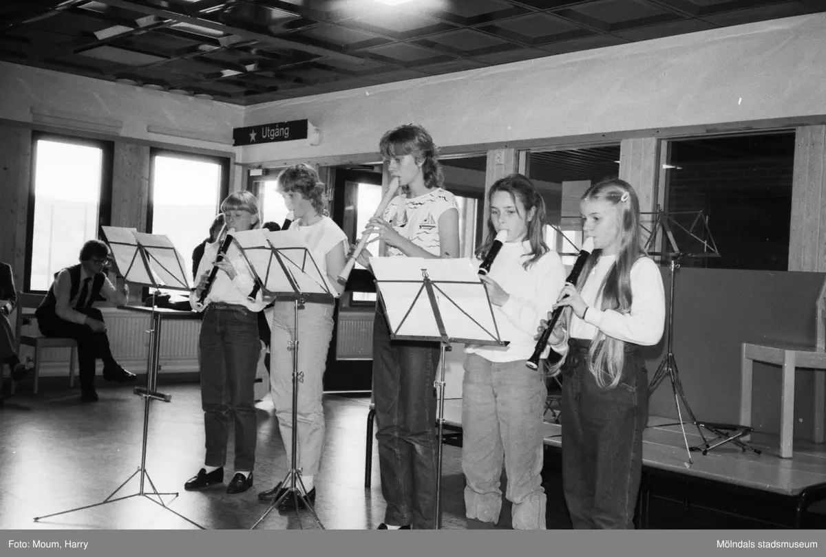 Vårkonsert på Ekenskolan i Kållered, år 1983. "Anna Eriksson, Paulina Hall, Cecilia Hultman, Jessica Persson och Cicilia Wilderot bjöd på skön flöjtmusik."