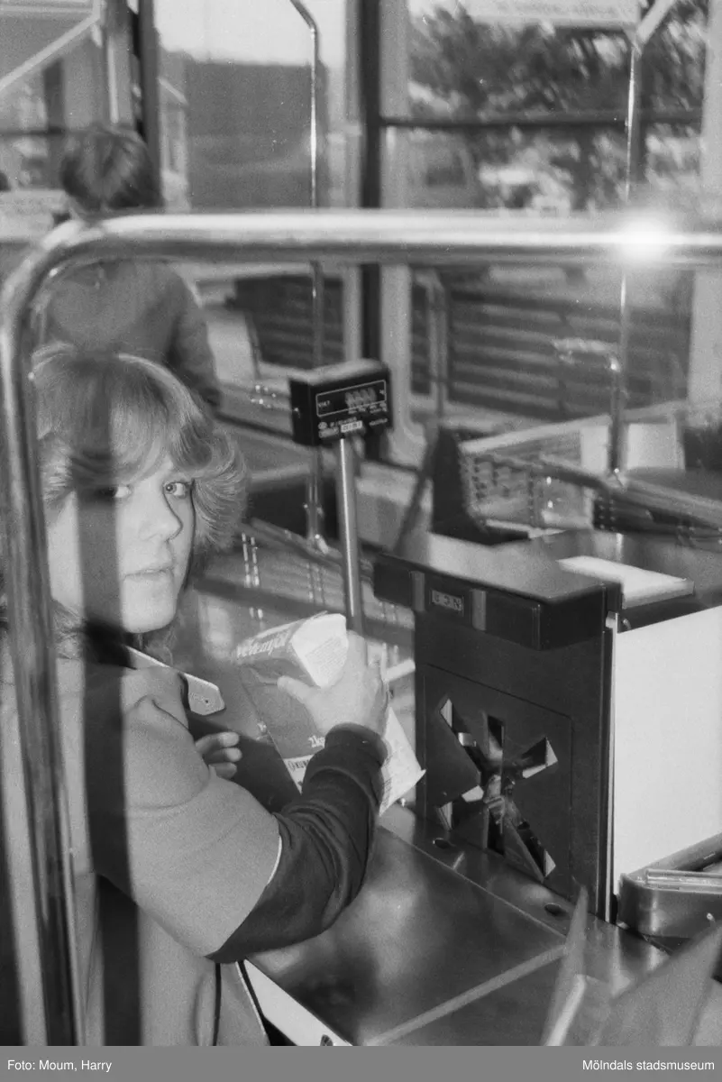 Livsmedelsbutiken Bonum i Kållered installerar datakassor, år 1984.
