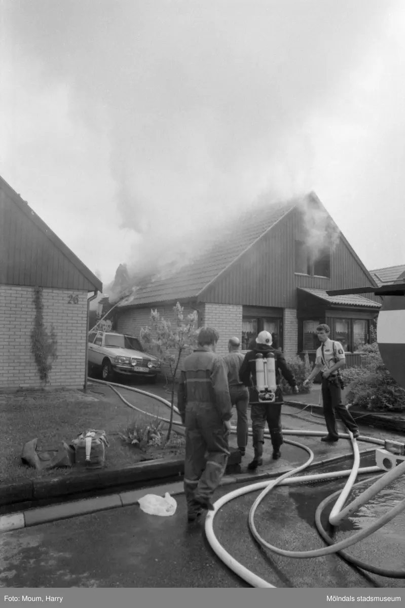 Eldsvåda på Diamantvägen i Lindome, år 1984. "Rökutvecklingen var kraftig och brandkåren hade ett hårt arbete att rädda villorna."