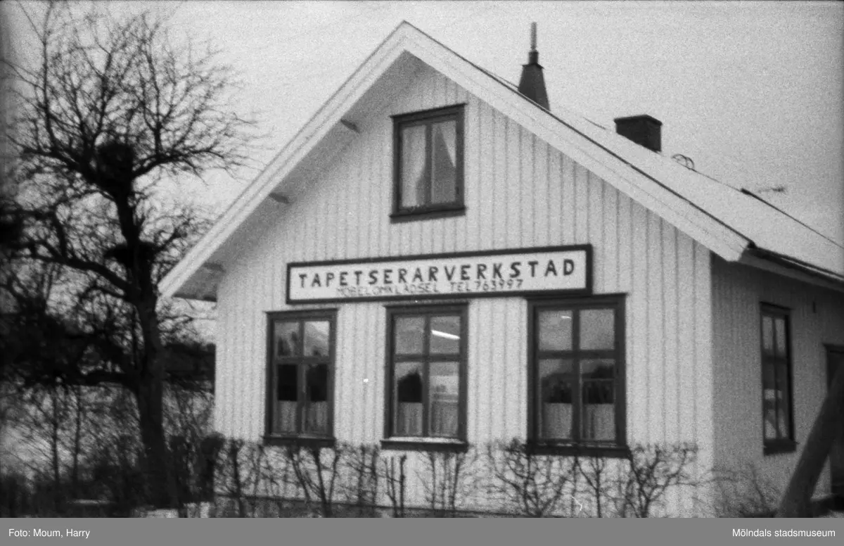 Lindome Tapetserarverkstad vid Spårhagavägen i Lindome, år 1985.