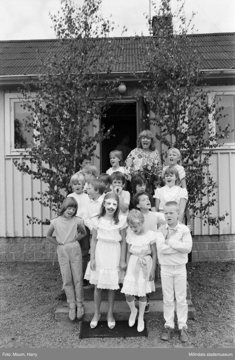Titel: Skolavslutning på Hällesåkersskolan i Lindome, år 1984. För mer information om bilden se under tilläggsinformation.