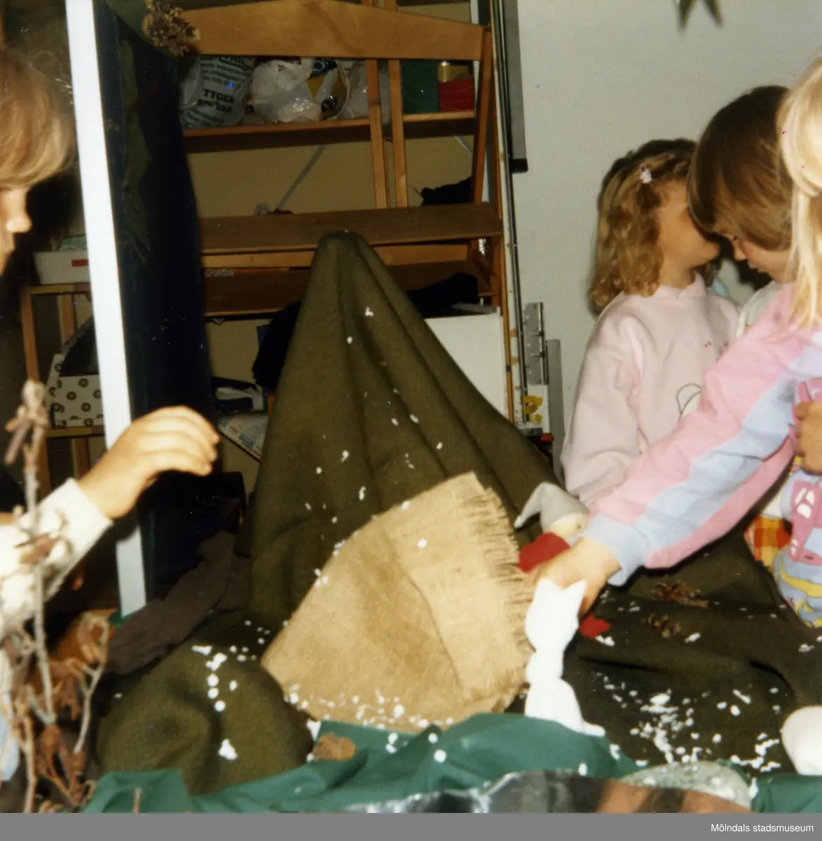 Dockteater på Lackarebäcks barnstuga 1987-04-30. Föreställning för dagbarnvårdare. Fotografi ur album tillhörande Blanka Kaplan.