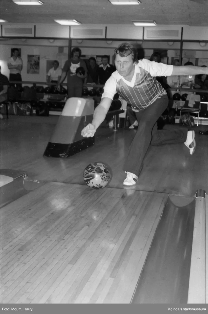 Nattbowling på Kållereds bowlinghall, år 1984. "Bowling är kul. Här spelar Kjell Berndtsson, Gbgs Taxi "ut"."
