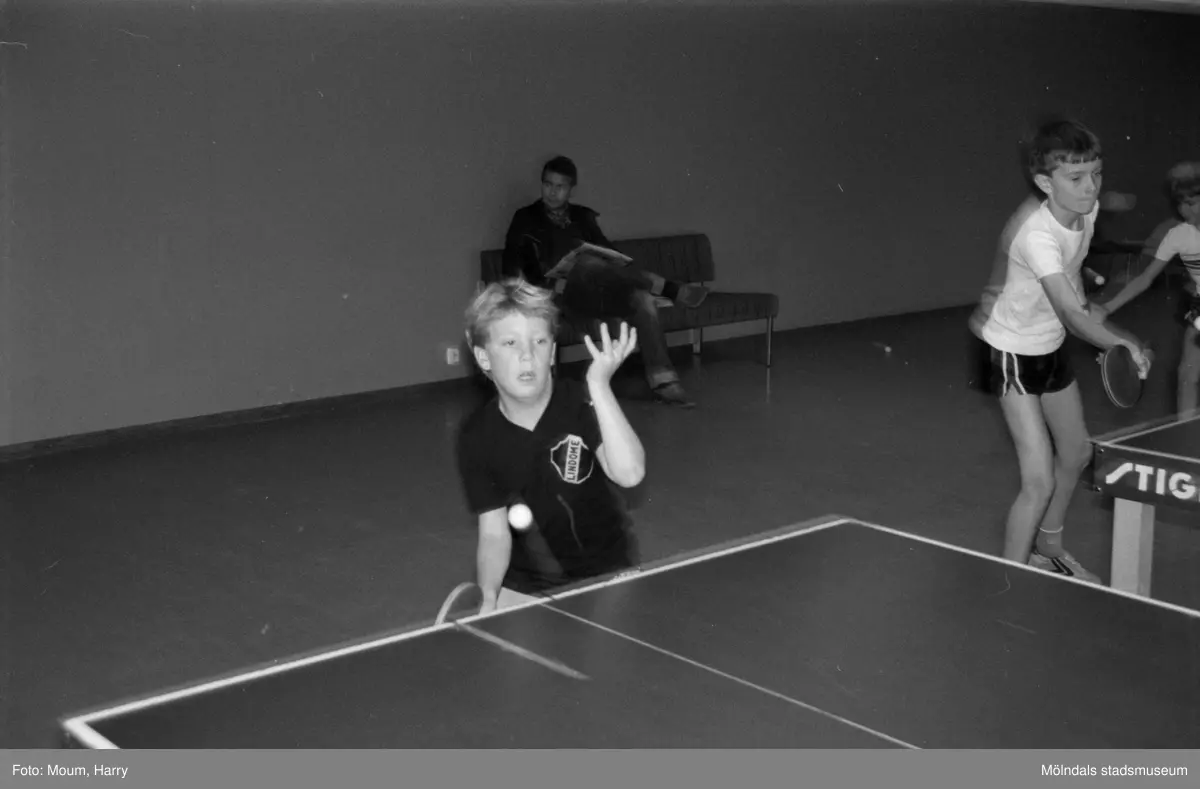 Bordtennis i Almåsskolans sporthall i Lindome, år 1984. "Marcus Jareborg är helskärpt på bordtennis."