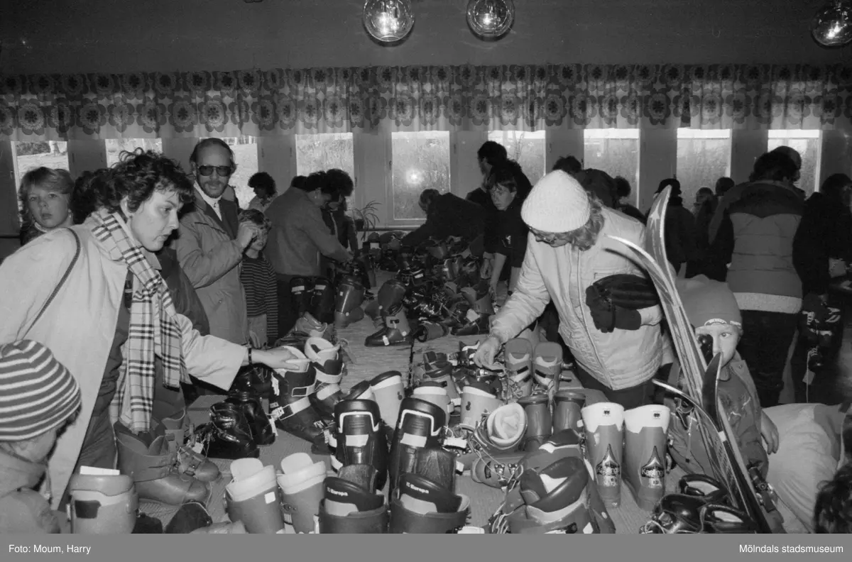 Friluftsfrämjandet anordnar bytesmarknad i Almåsskolan i Lindome, år 1983. "Det fanns massor med prylar på bytesmarknaden i Almåsskolan."