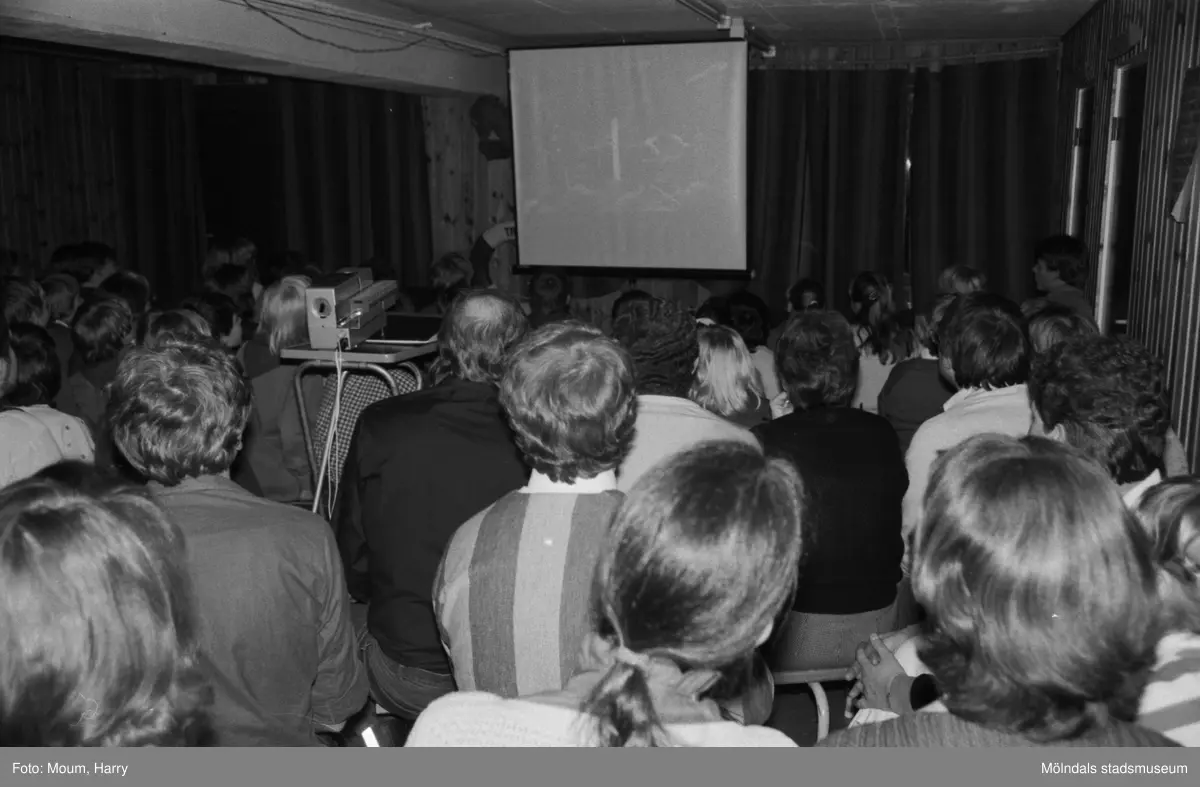 Diabildsvisning vid scout- och föräldraträff i Kållereds missionskyrka, år 1984.