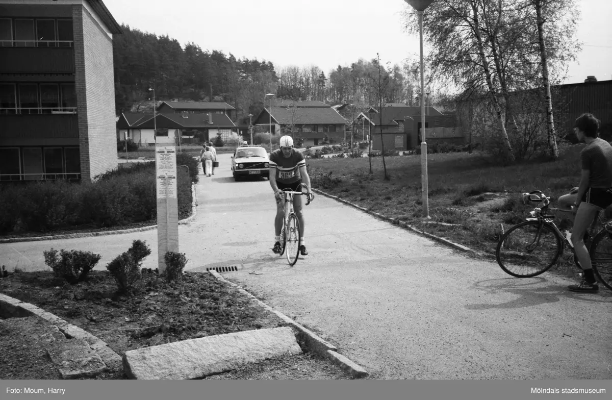 Mölndals Cykelklubb anordnar motionsloppet Lindome-rundan i Lindome, år 1983. Vid klubbens lokal på Granitvägen.