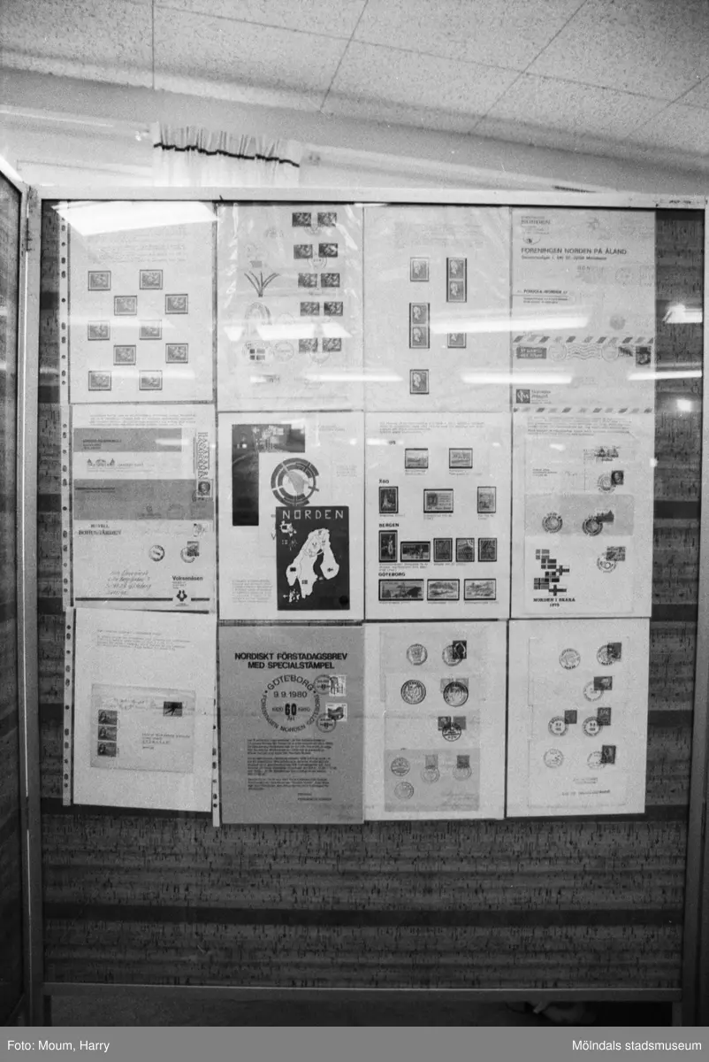 Frimärksutställning på Lindome bibliotek, år 1983.