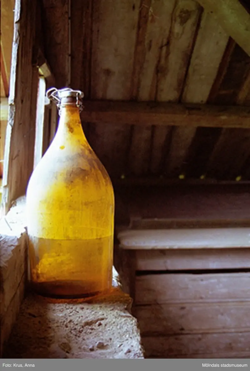 Balltorp 1:106. F.d. bränneribyggnad - detalj interiör: glasflaska.