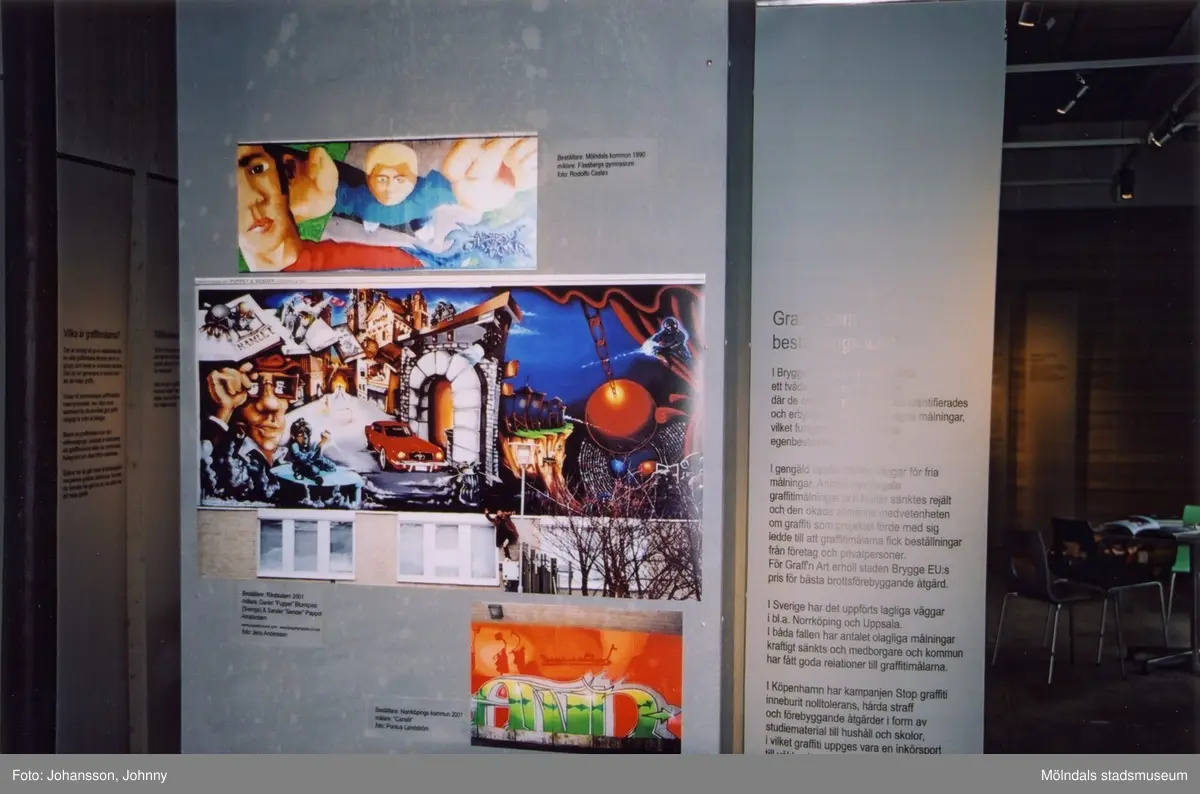 Från utställningen "Alltså finns jag" som handlade om graffitikultur. Pågick 25 januari - 25 maj 2003 på Mölndals Museum (senare Mölndals stadsmuseum). Produktionen var ett samarbete mellan Mölndals Museum, Vitlycke museum, Bohusläns museum, Västergötlands museum och Konstkonsulenterna i Västra Götalandsregionen.