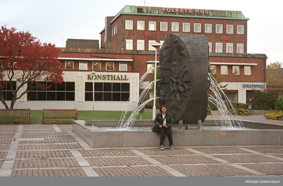 Stadshusplatsen och Folkets hus. Mölndalsbro i dag - ett skolpedagogiskt dokumentationsprojekt på Mölndals museum under oktober 1996. 1996_1320-1337 är gjorda av högstadieelever från Åbyskolan 8A, grupp 5. Se även 1996_0913-0940, gruppbilder på klasserna 1996_1382-1405 och bilder från den färdiga utställningen 1996_1358-1381.