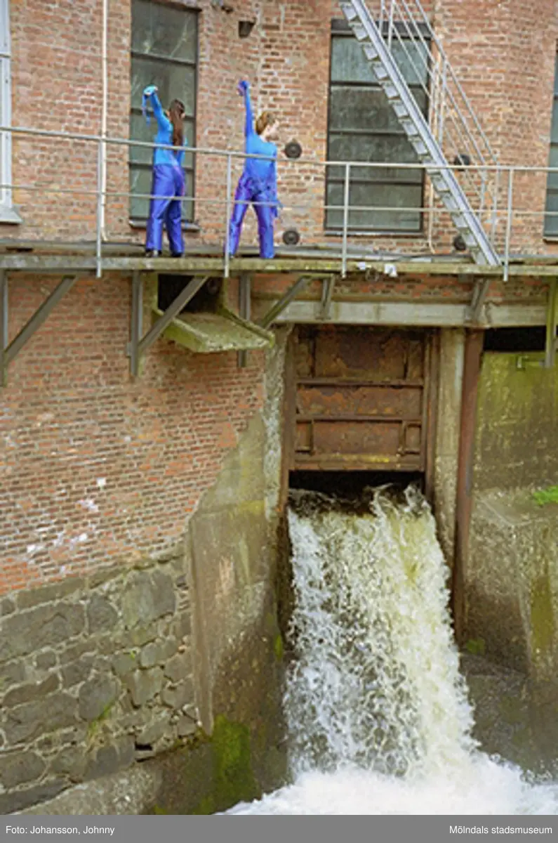 Kvarnbydagen 28 april 2002. Danstillställningen ForsAnde vid forsen och Oljeslageriet. Dansare: Tina Andersson och Åsa Thegerström.