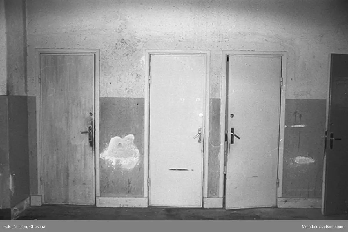 Byggnadsdetaljer: Fyra slitna dörrar i August Werners fabriker i Lindome, hösten 1994.