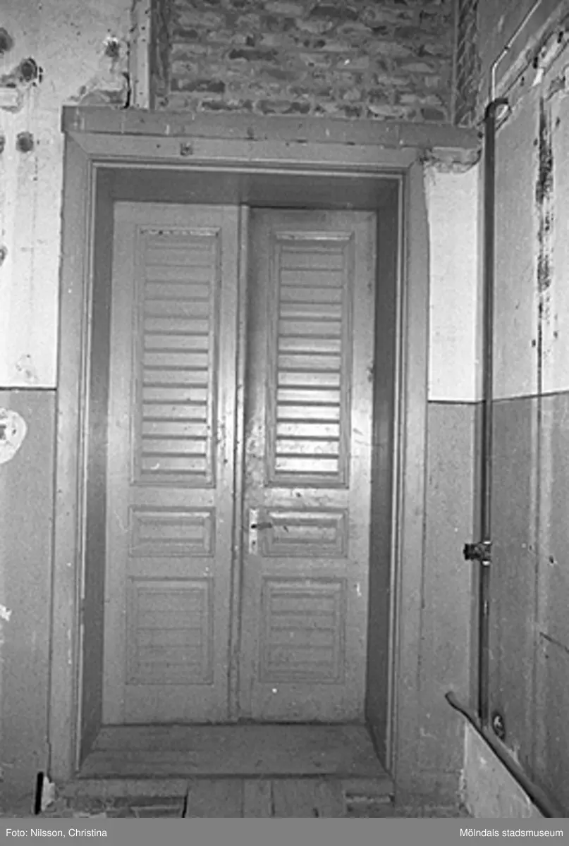 Byggnadsdetaljer: En dubbeldörr i August Werners fabriker i Lindome. Hösten 1994.