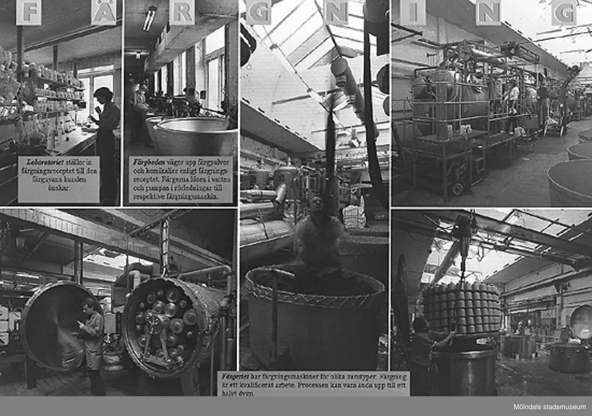 Interiör från laboratoriet, färgboden och färgeriet i Anderstorps fabrik. Bildmontage med förklarande text.