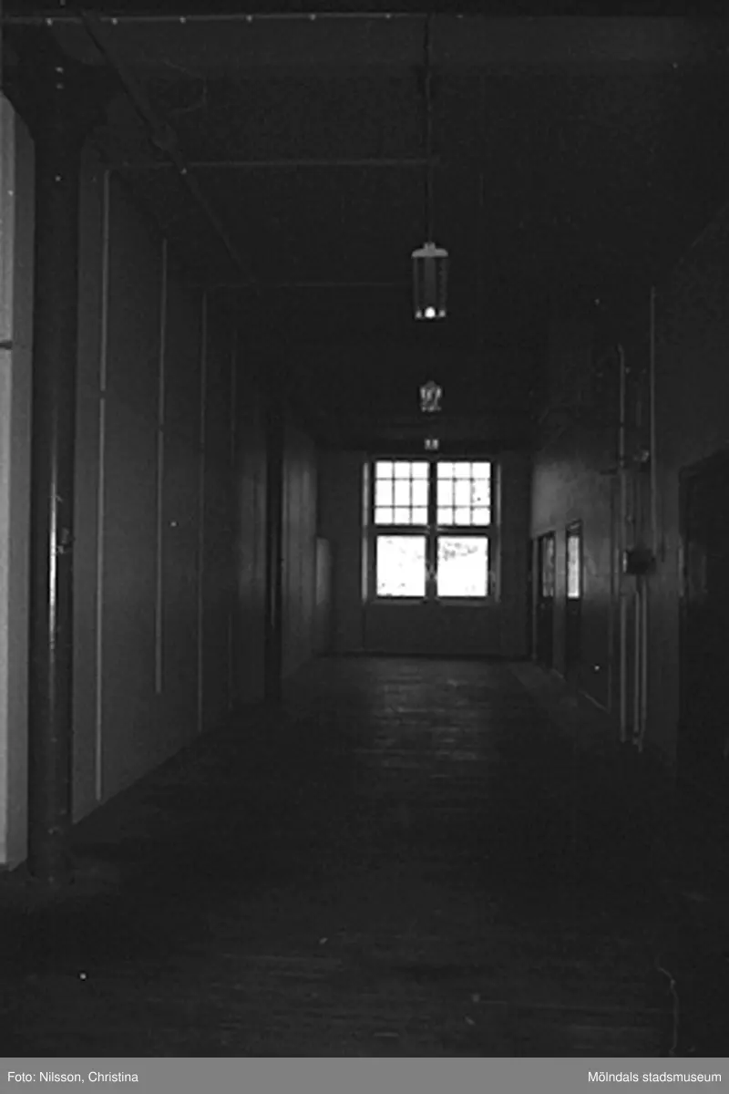 Byggnadsdetaljer: Korridor och fönster i August Werners fabriker i Lindome, hösten 1994.