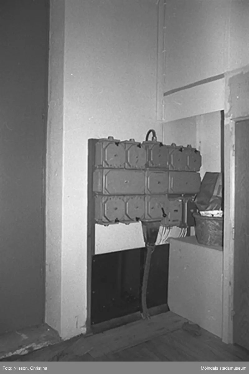 Byggnadsdetalj: Elinstallation uppsatt på en vägg i August Werners fabriker i Lindome, hösten 1994.