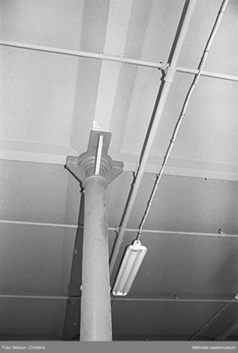 Byggnadsdetaljer: Pelare och tak i August Werners fabriker i Lindome, hösten 1994.