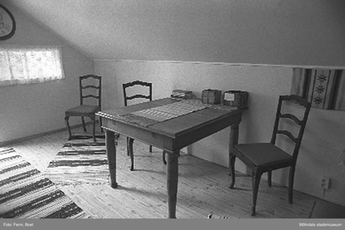 Titel: Vinden ovanpå snickarboden. Hembygdsgården/Börjesgården i Hällesåker, Lindome 1992-06-29.