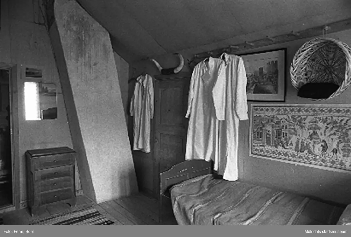 Titel: Sovplats på vinden i Hembygdsgården/Börjesgården i Hällesåker, Lindome 1992-06-29.