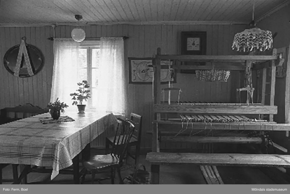En vävstol i köket. Hembygdsgården/Börjesgården i Hällesåker, Lindome 1992-06-29.