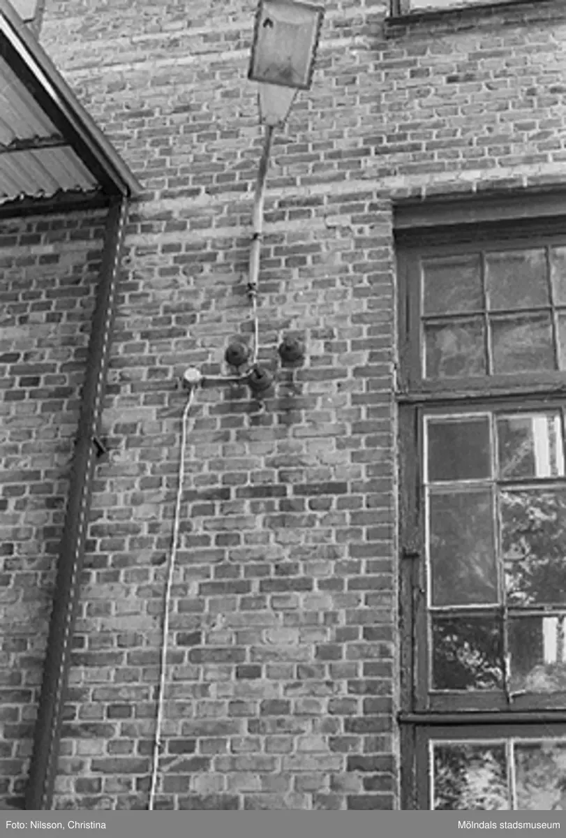 Werners fabriker i Annestorp, Lindome, hösten 1994. Byggnadsdetaljer: Fönster och lykta.