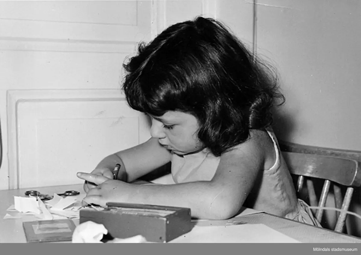 En flicka som ritar vid Holtermanska daghemmet 1953.