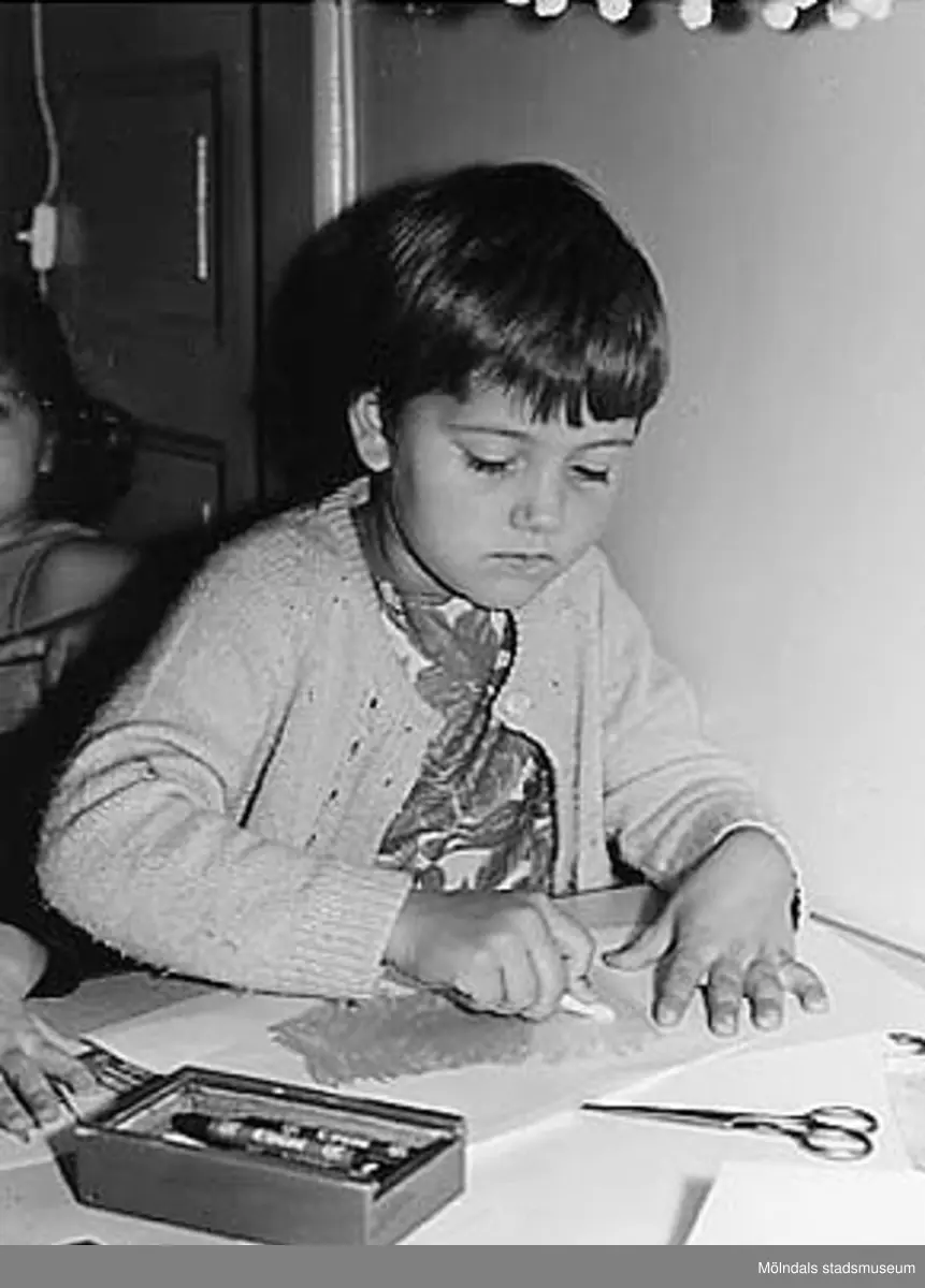 En flicka som ritar vid Holtermanska daghemmet 1953.