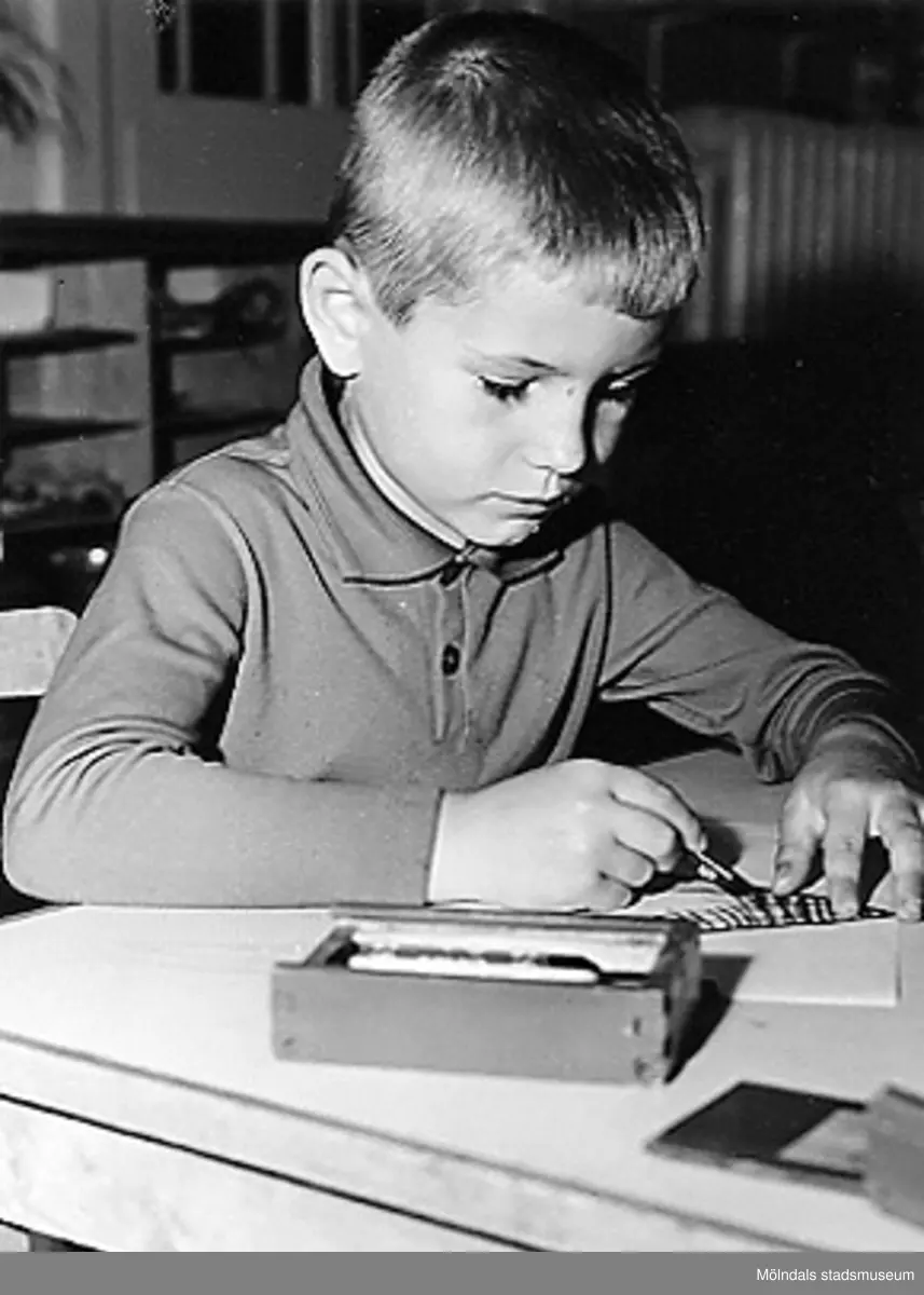 En pojke som ritar vid Holtermanska daghemmet 1953.