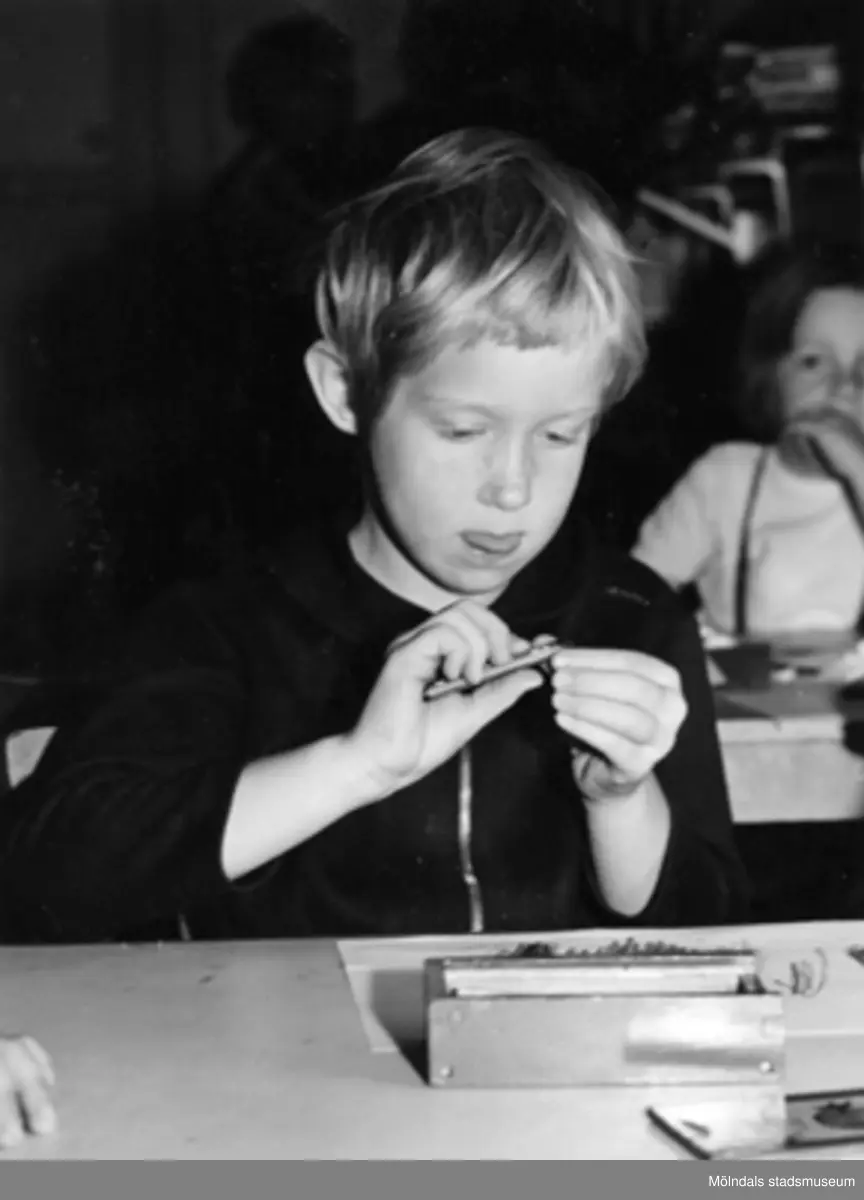 En pojke som pysslar vid Holtermanska daghemmet 1953.