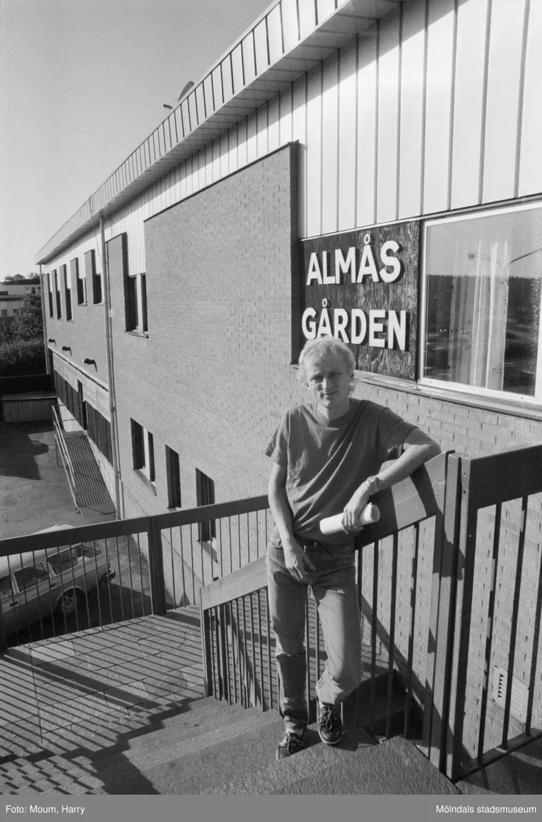 Föreståndare Lars Eliasson utanför Almåsgården i Lindome, år 1983. "Almåsgårdens föreståndare Lars Eliasson tror på satsningen i Lindome."
