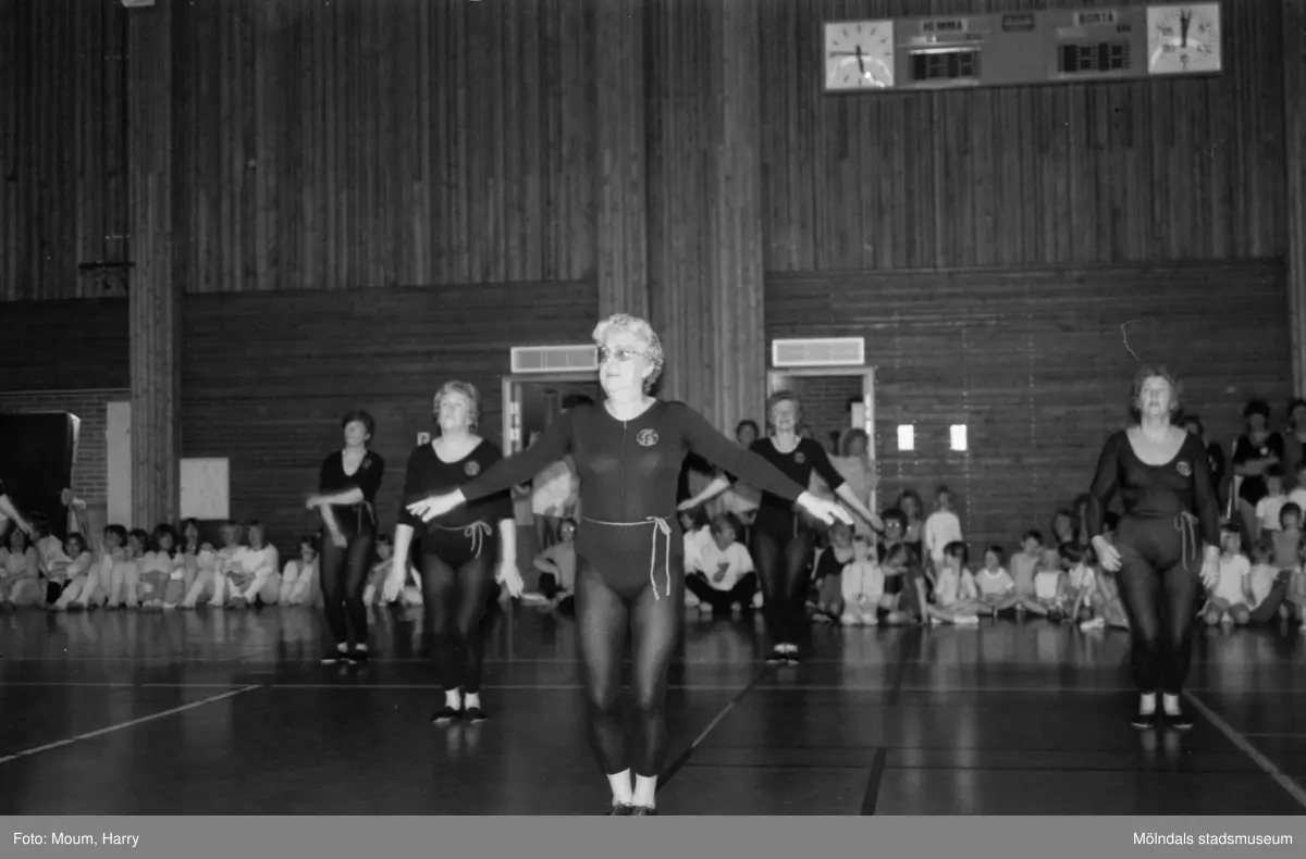 Kållereds Gymnastikförening har uppvisning i Ekenhallen i Kållered, år 1984. Eivor Bjerrhedes grupp.