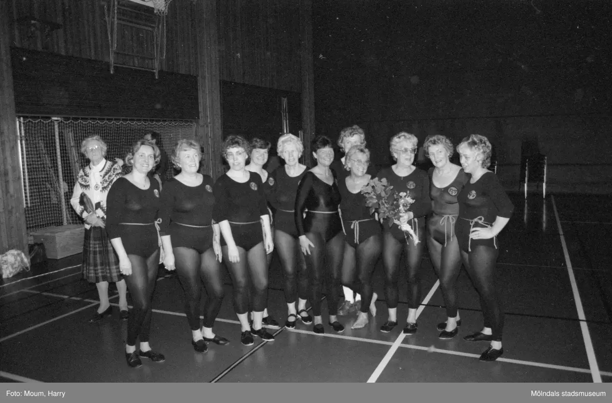 Kållereds Gymnastikförening har uppvisning i Ekenhallen i Kållered, år 1984. Eivor Bjerrhedes grupp.