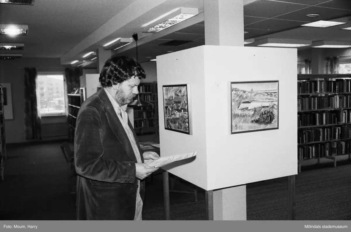 Konstnären Henry Peterson ställer ut på Kållereds bibliotek, år 1984. "Henry Peterson väljer gärna sina motiv från Bohuslän."