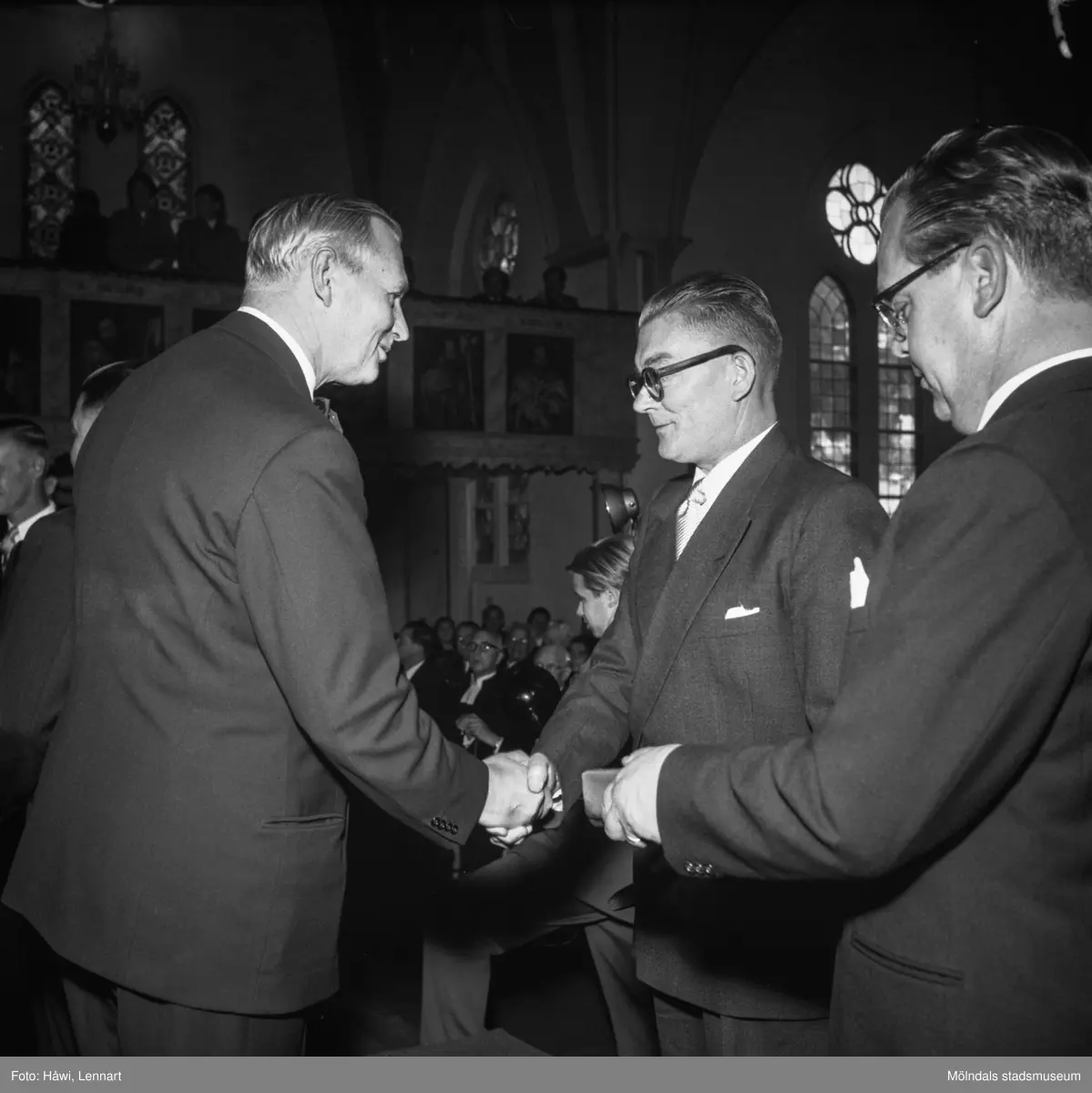 Utdelning av minnesgåvan vid pappersbruket Papyrus 60-årsjubileum. Mölndals kyrka, 24/9 1955.