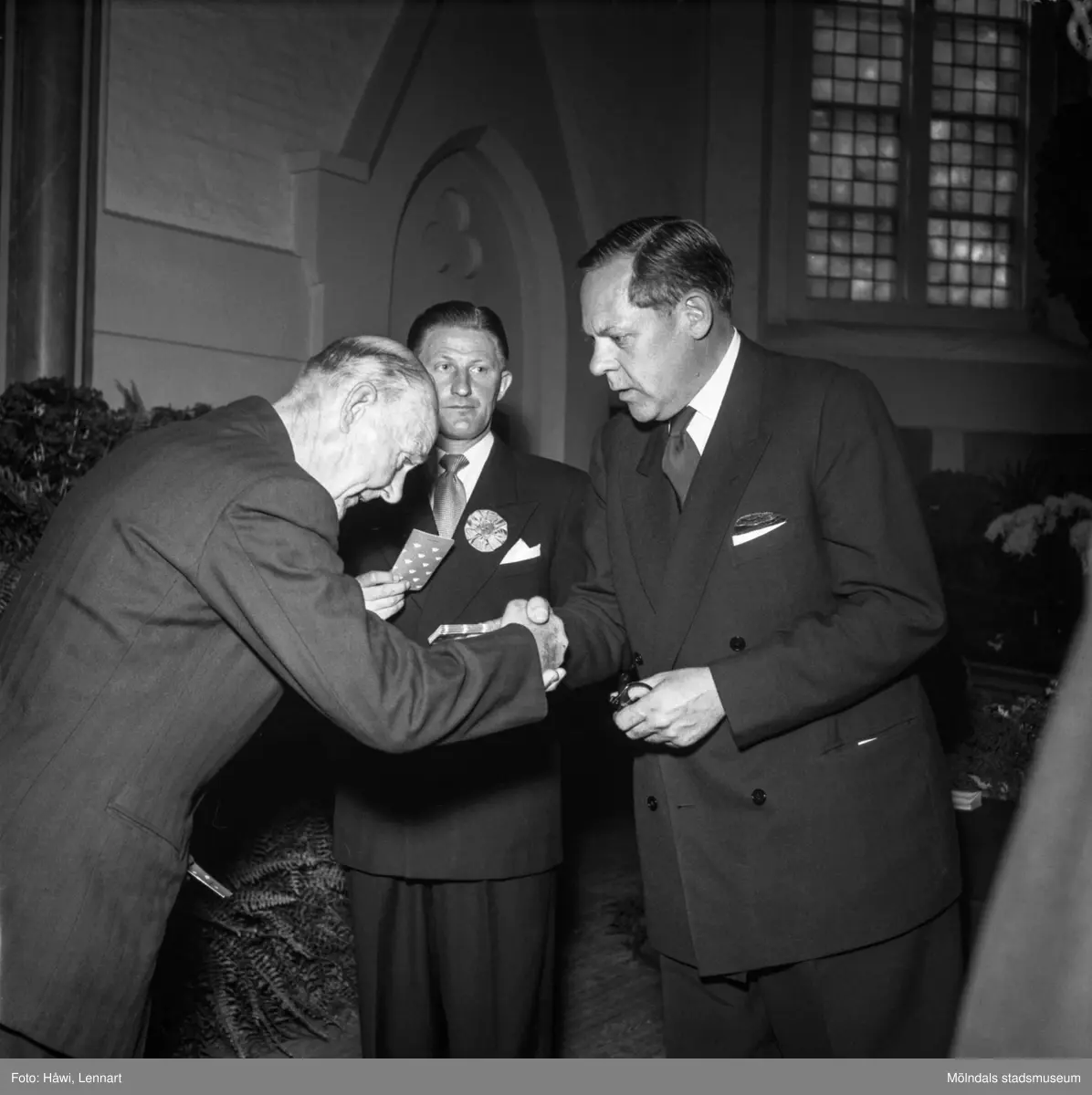 Utdelning av minnesgåvan vid pappersbruket Papyrus 60-årsjubileum. Mölndals kyrka, 24/9 1955.