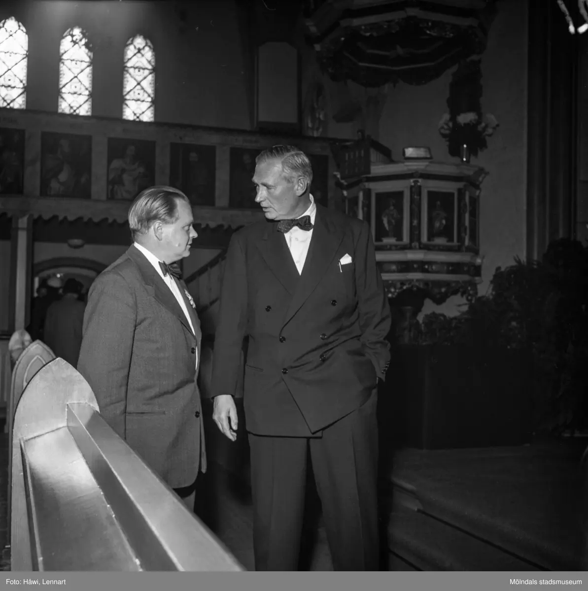 Utdelning av minnesgåvan vid pappersbruket Papyrus 60-årsjubileum. Mölndals kyrka, 24/9 1955. Håkan Törnqvist och Marcus Wallenberg Jr.