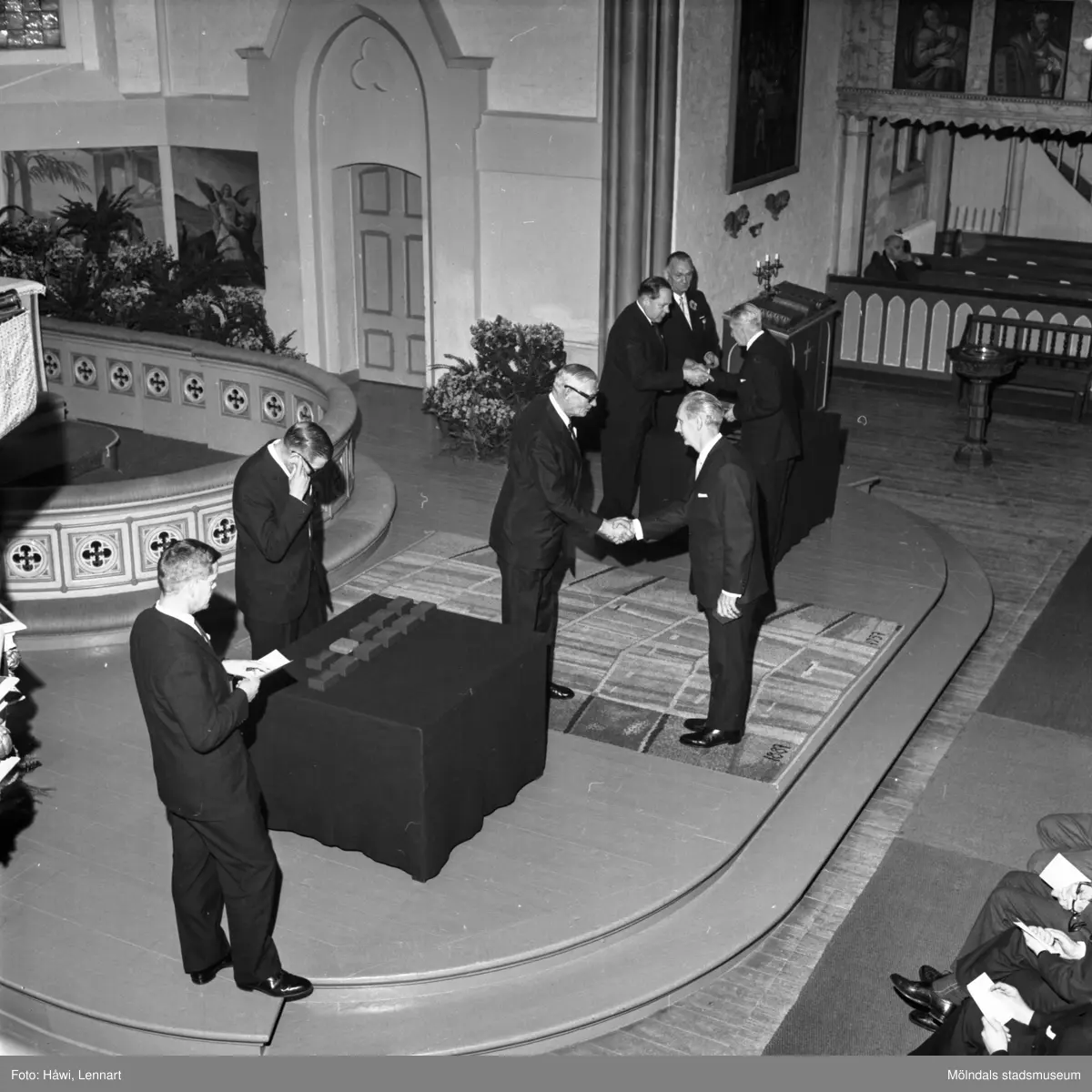 Utdelning av pappersbruket Papyrus minnesgåva 1965. Mölndals kyrka, 9/11 1965