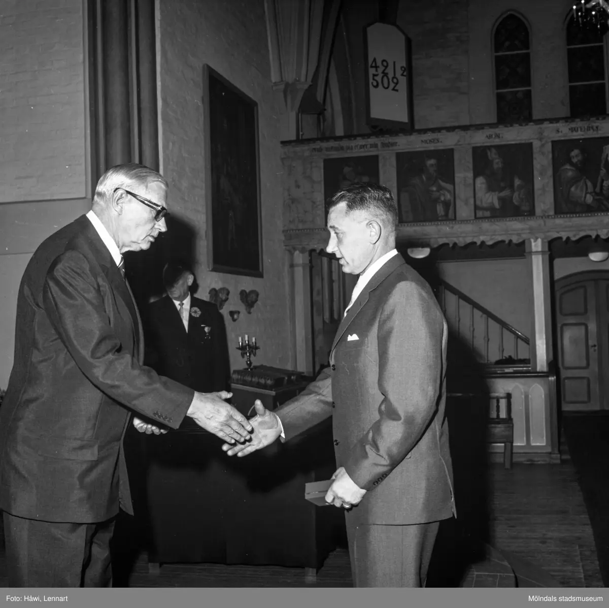 Utdelning av pappersbruket Papyrus minnesgåva 1965. Mölndals kyrka, 9/11 1965
