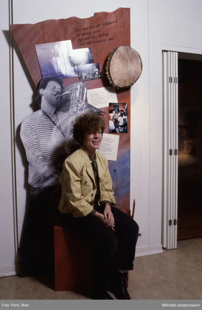 Ulla Hasselqvist i utställningen "Från näckens polska till rockens roll" på Mölndals museum, Norra Forsåkersgatan 19 i Mölndal. Den pågick från 1 december 1990 till 31 december 1991.
