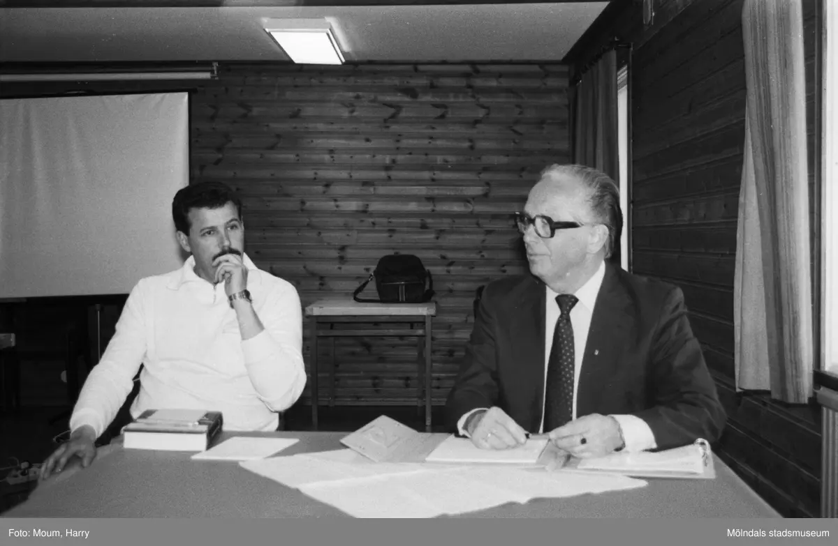 Folkpartiets avdelning i Lindome har vårträff i Lindome, år 1984. "Polis Ola Candefors och Arvid Annerås stod för underhållningen."
